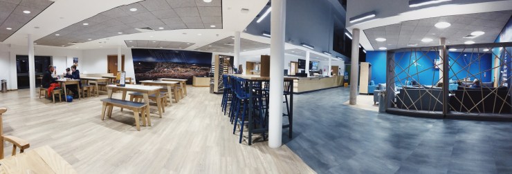 One of the highlights of January was our reading holiday in the brand new youth hostel, The Sill, in Northumberland. It was right next to Hadrian’s Wall. The building blended into the landscape discreetly with a steel grey structure and a green roof. It was bright and airy inside with a big open dining/lounge area. Our room was clean and modern with shower room, toilet and handwash basin, all in a separate area to where the beds were.